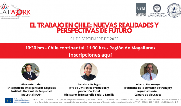 El seminario “El trabajo en Chile: Nuevas realidades y perspectivas de futuro” se organizó de forma conjunta por las tres universidades socias en Chile del Proyecto LATWORK: la Universidad Viña del Mar, la Universidad San Sebastián y la Universidad de Magallanes. Durante el transcurso de la mañana, asistieron más de 35 usuarios, personal académico, estudiantes de las Universidades y también público externo de distintas instituciones chilenas e internacionales.