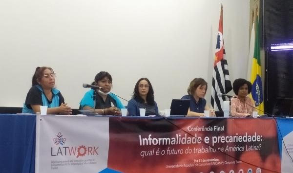 En el marco de la Conferencia Final Internacional de LATWORK "Informalidad y Precariedad: ¿cuál es el futuro del trabajo en América Latina?" que tuvo lugar en la Universidad Estadual de Campinas en Brasil, el Grupo de Trabajo sobre “Género y Trabajo” de la REDLATT organizó la mesa temática “Género y Trabajo”. En este espacio se discutieron 10 ponencias a lo largo de los 3 días durante los cuales se extendió la Conferencia y el día 10 de noviembre se desarrolló el Panel Especial en el que participaron como panelistas: Yolanda Cortes y Nery Cuarite – Coordinadoras de AMILV – Associação de Mulheres Imigrantes Luz e Vida – São Paulo – Brasil; y Rejane Gomes Carvalho - profesora de la Universidad Federal da Paraíba – Brasil. El panel fue moderado por Paula Varela – profesora de la Universidad de Buenos Aires - Argentina.