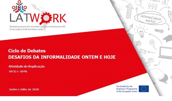 Continuando con las actividades programadas en el Ciclo de debate "Desafíos informales: antes y hoy", llevado a cabo a través de una asociación entre los equipos del Proyecto Erasmus + Latwork en UFPB y UFCG, se llevará a cabo el próximo viernes 3 de julio de 2020 a las 9 am en Brasil, la segunda sesión, que tiene el tema "Encuestas nacionales de trabajo y el problema de medir la informalidad (Angentina y Chile) y tendrá como profesores a los profesores Andrea Delfino (Universidad Nacional del Litoral) y Roberto Gormaz Araya (Universidad Viña del Mar). El evento tendrá 3 sesiones más además de esto, que tendrá lugar los días 8, 17 y 24 de julio de 2020. La inscripción aún se puede hacer a través del enlace: https://docs.google.com/forms/d/1xwPWZYEklOxDnFyD7ZKJCMgKOdU02gZ0qokjd9VPWC8/viewform?edit_requested=true . Los inscritos en el evento tendrán derecho a un certificado de participación ".