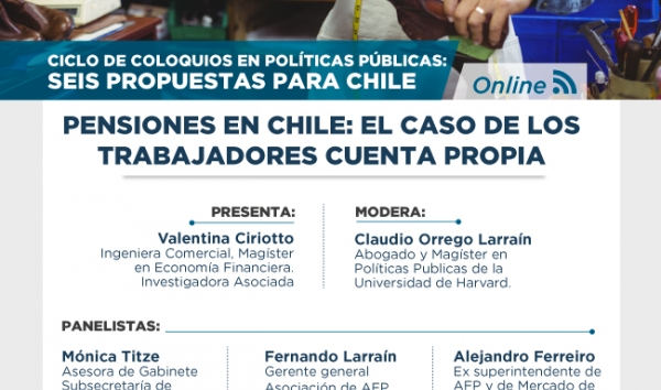 The UNIVERSIDAD SAN SEBASTIÁN, through the Institute of public politics, began the cycle with a theme of national contingency, Pensions in Chile: the case of self-employed workers. Every Wednesday at 5:00 pm you can participate in the conferences through the link: https://www.youtube.com/watch?v=RyHs90vYbyQ&feature=youtu.be