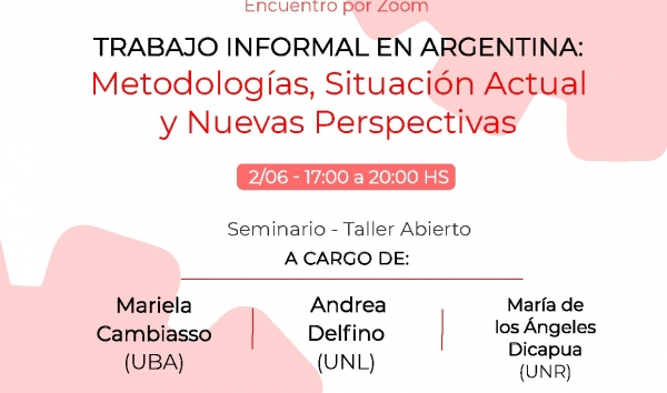 El Seminario – Taller abierto “Trabajo informal en Argentina: metodologías, situación actual y nuevas perspectivas” se llevará a cabo en el marco de las actividades del Proyecto Erasmus + LATWORK y está organizado de manera conjunta por la Universidad de Buenos Aires (UBA), la Universidad Nacional del Litoral (UNL) y la Universidad Nacional de Rosario (UNR). Se realizará por plataforma zoom el jueves 2 de junio de 17 a 20hs. Estará a cargo de las docentes e investigadoras Mariela Cambiasso (UBA), Andrea Delfino (UNL) y María de los Ángeles Dicapua (UNR). Asimismo, se entregarán certificados.