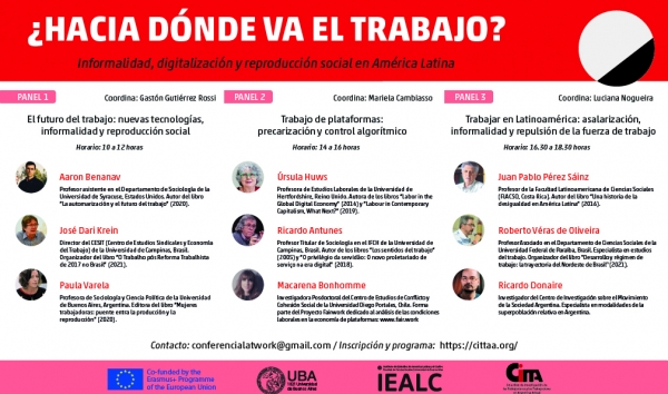 La Conferencia estará compuesta por tres paneles integrados por destacados investigadores de EE.UU., Europa y América Latina, la conferencia ofrecerá una gran oportunidad para abordar críticamente importantes debates acerca del trabajo en la actualidad.